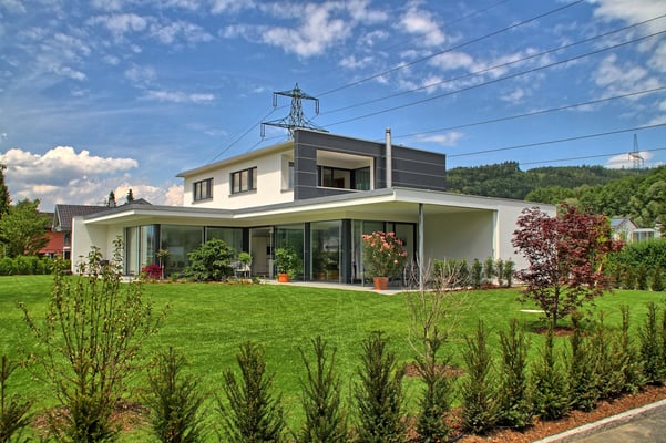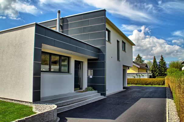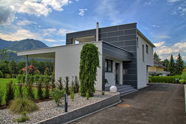 Haus sah vor, Wohngebäude samt Garage und Nebenräumlichkeiten mittels einheitlicher Architektursprache zu verbinden. Durch gezieltes Spielen
